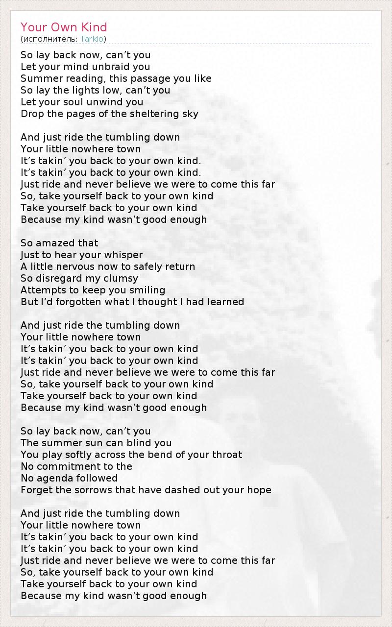 А как ты думаешь, о чем песня "Your Own Kind" ?