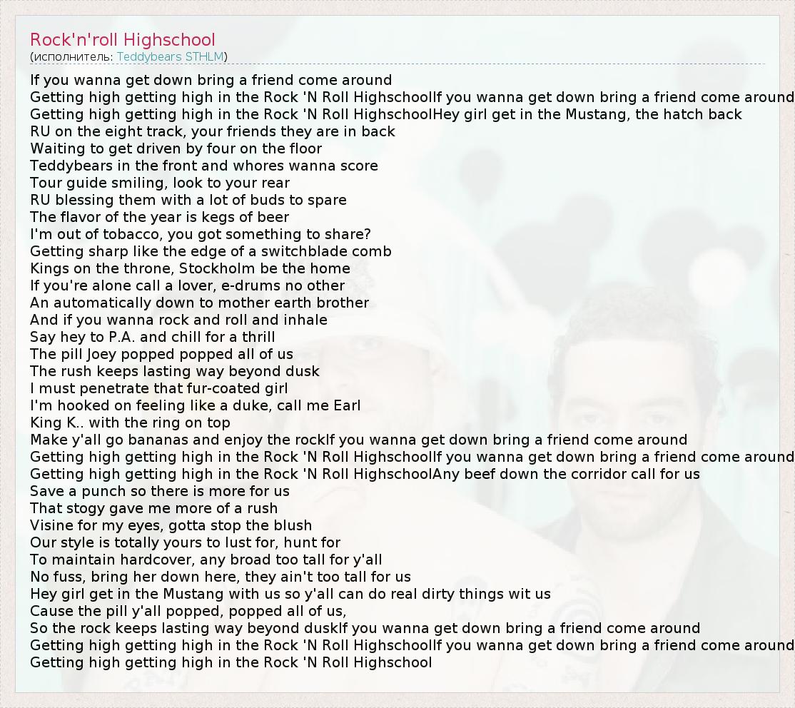А как ты думаешь, о чем песня "Rock'n'roll Highschool" ?
