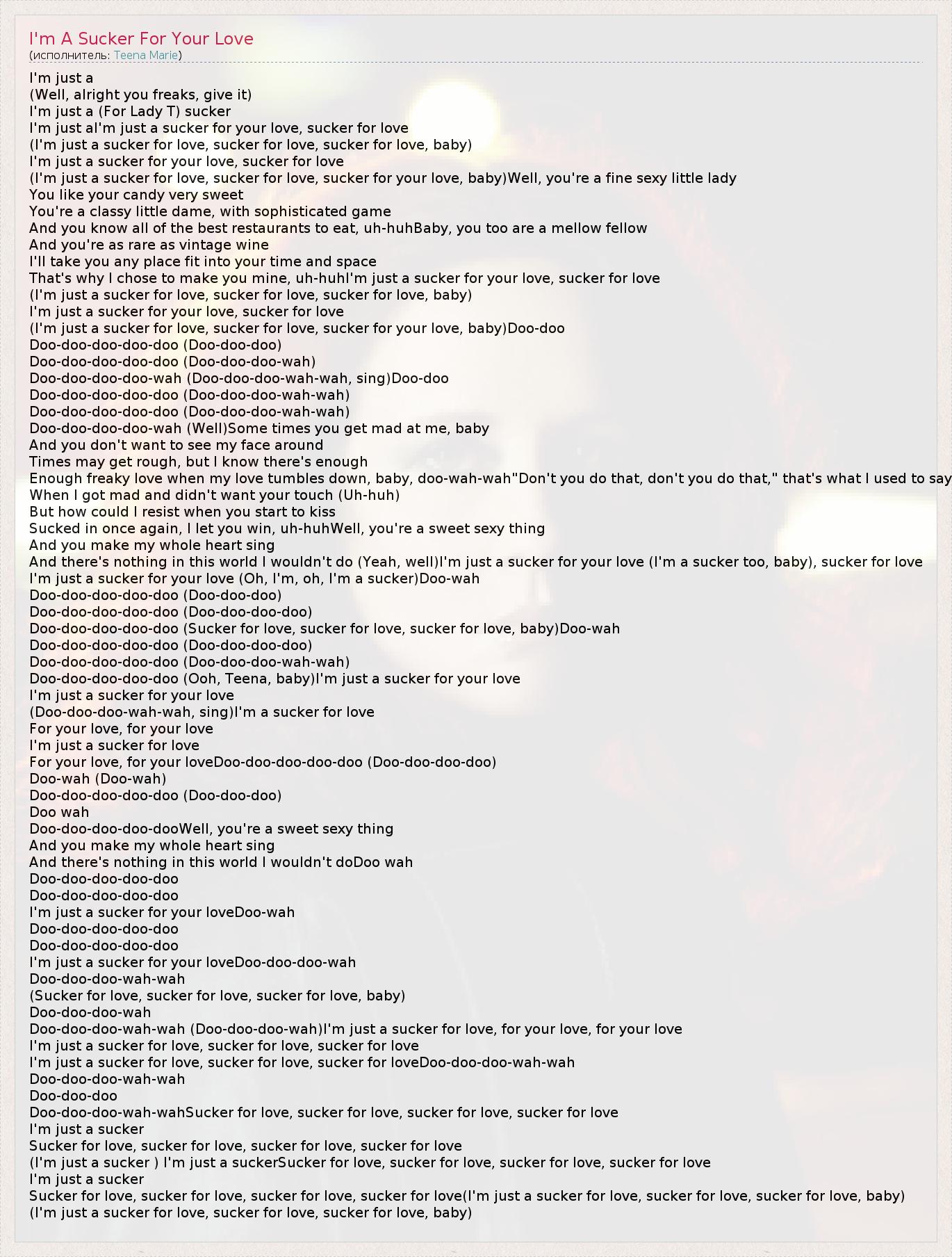 А как ты думаешь, о чем песня "I'm A Sucker For Your Love" ?