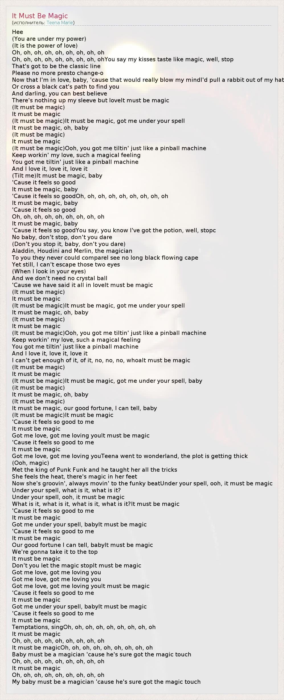А как ты думаешь, о чем песня "It Must Be Magic" ?