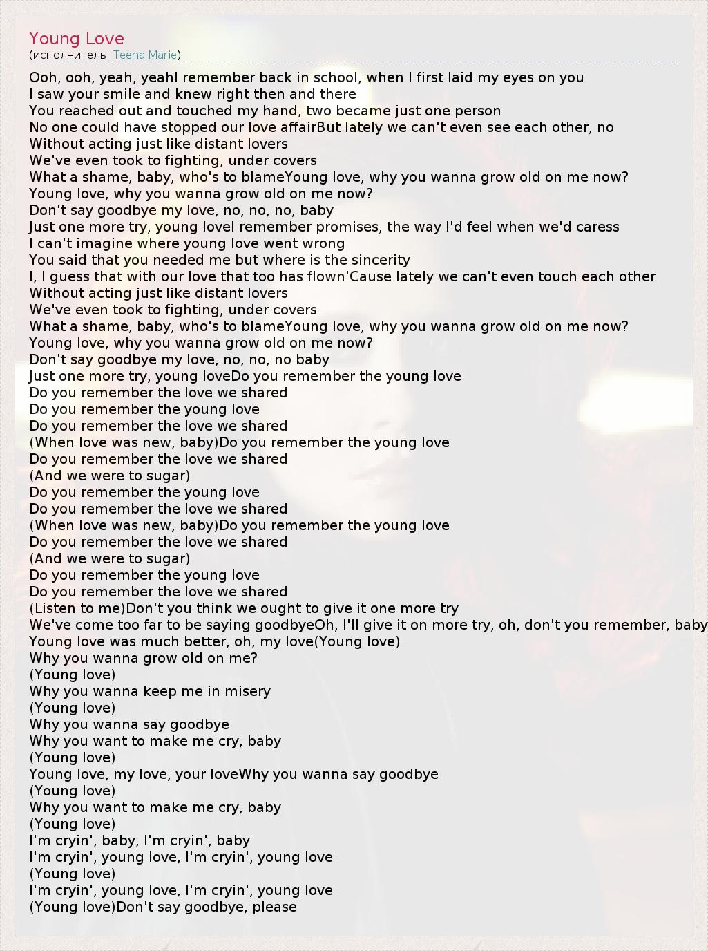 Just one more try, young loveI remember promises, the way I'd feel when we'd caress