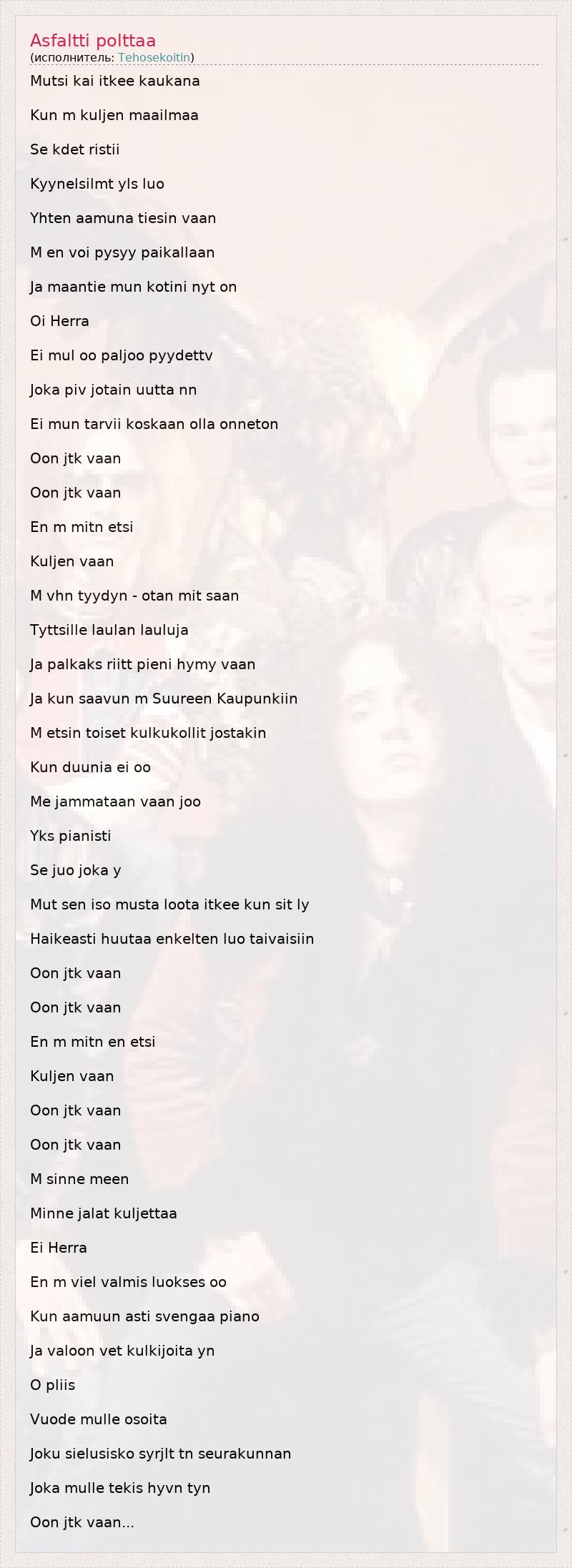 А как ты думаешь, о чем песня "Asfaltti polttaa" ?