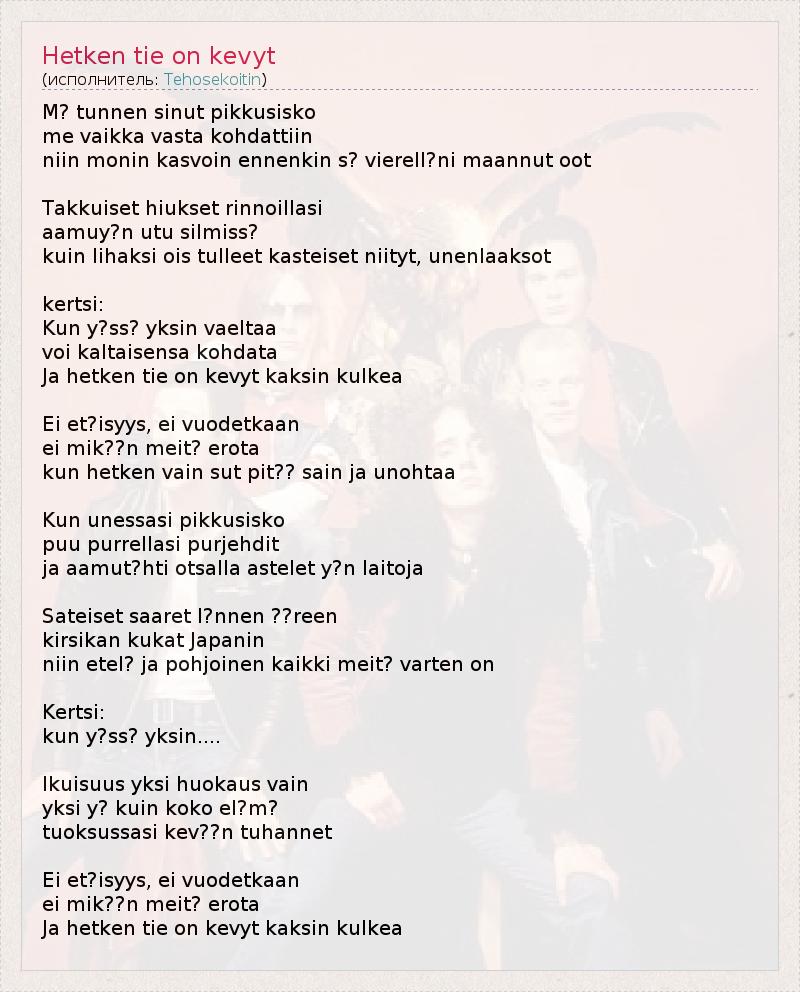 А как ты думаешь, о чем песня "Hetken tie on kevyt" ?