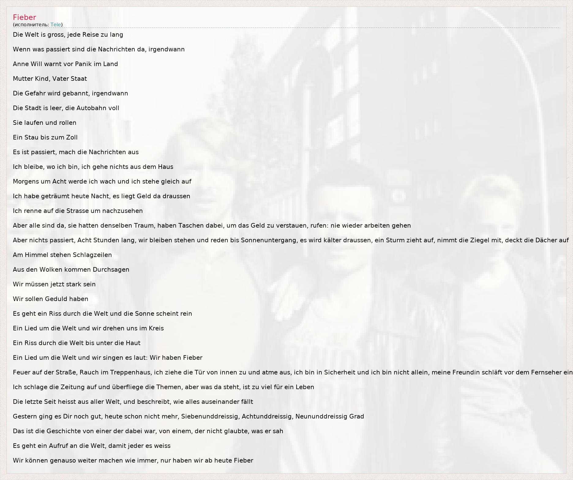 Ein Lied um die Welt und wir singen es laut: Wir haben Fieber