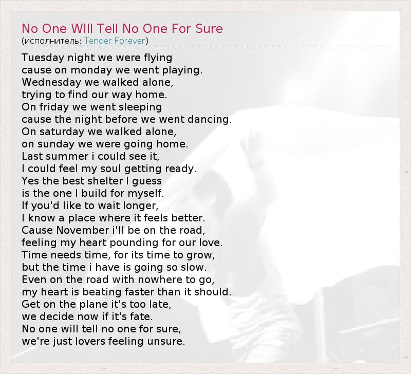 А как ты думаешь, о чем песня "No One WIll Tell No One For Sure" ?