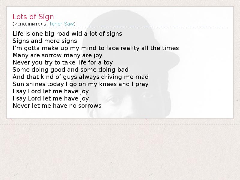 А как ты думаешь, о чем песня "Lots of Sign" ?