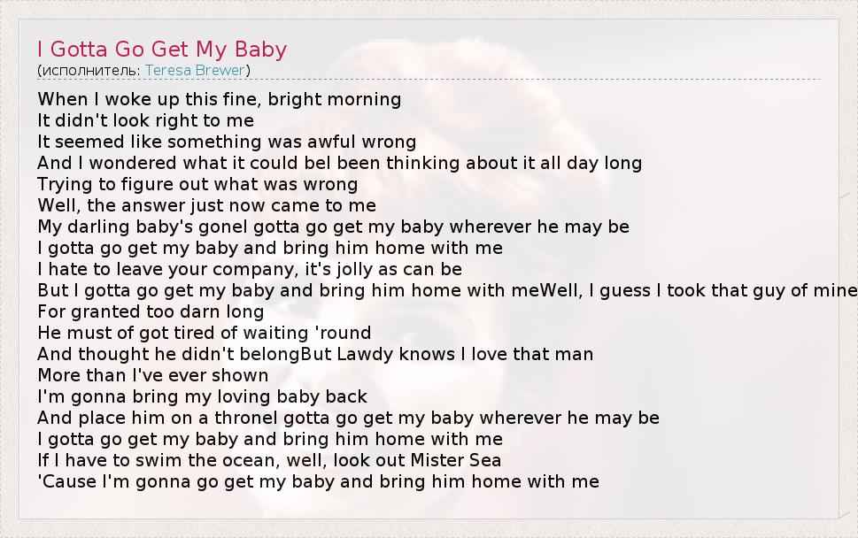А как ты думаешь, о чем песня "I Gotta Go Get My Baby" ?