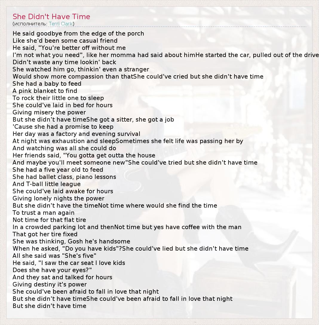 А как ты думаешь, о чем песня "She Didn't Have Time" ?