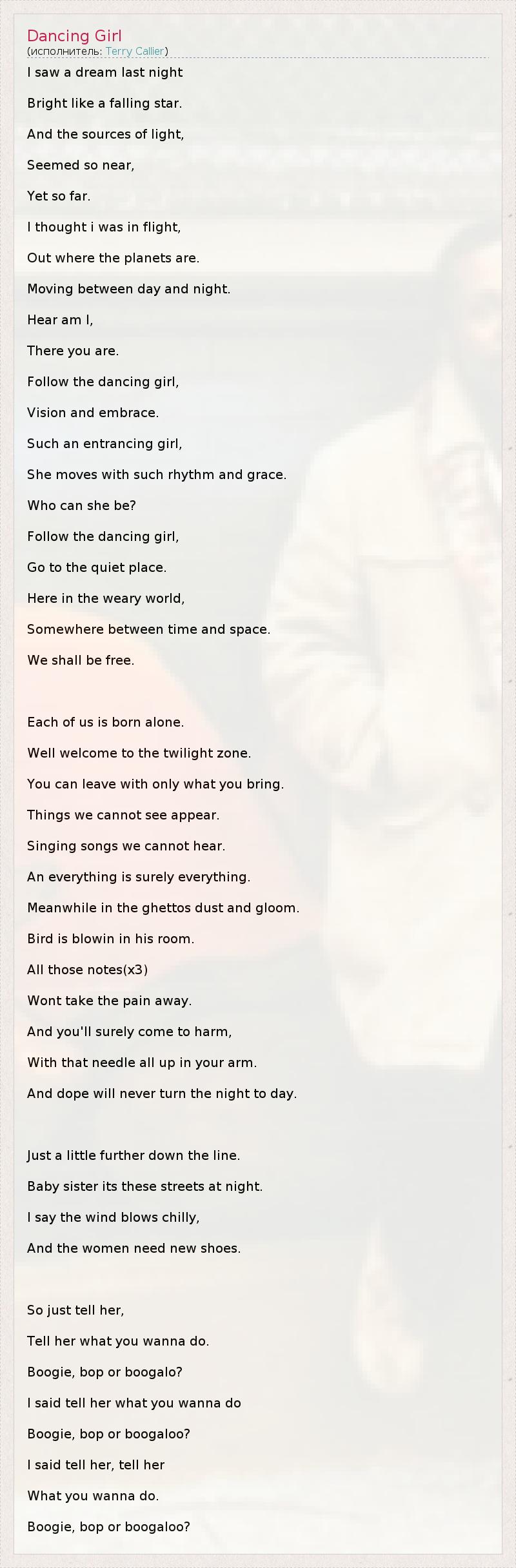 А как ты думаешь, о чем песня "Dancing Girl" ?
