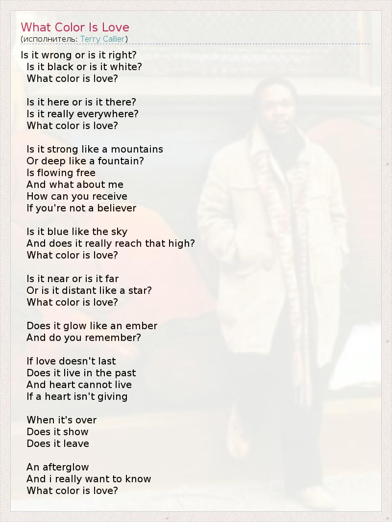 А как ты думаешь, о чем песня "What Color Is Love" ?