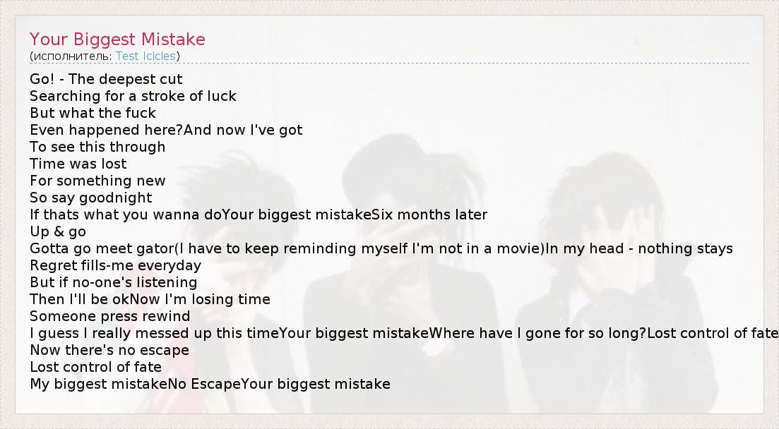 А как ты думаешь, о чем песня "Your Biggest Mistake" ?