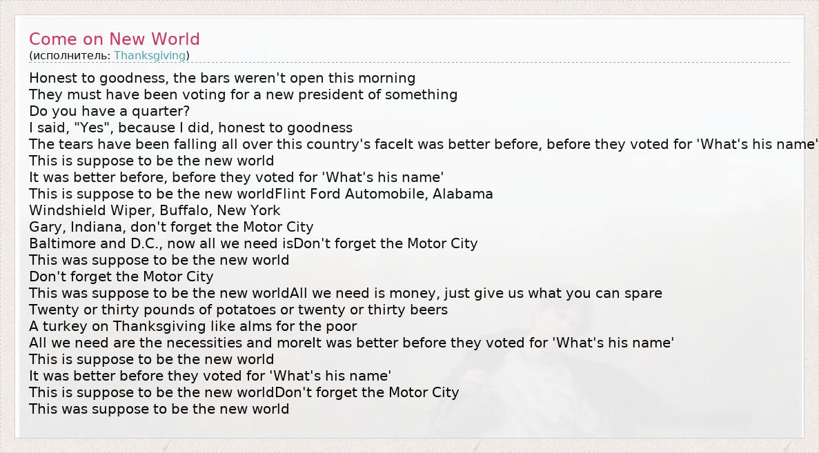 The tears have been falling all over this country's faceIt was better before, before they voted for 'What's his name'