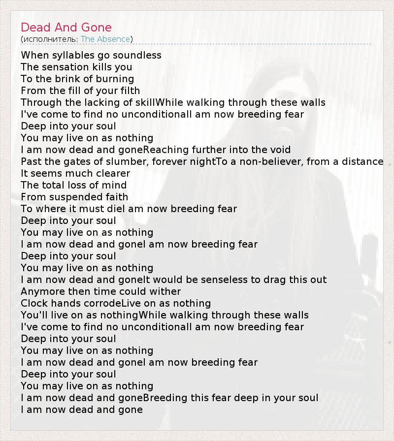А как ты думаешь, о чем песня "Dead And Gone" ?