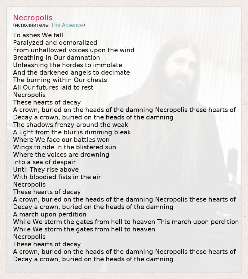 A crown, buried on the heads of the damning Necropolis these hearts of