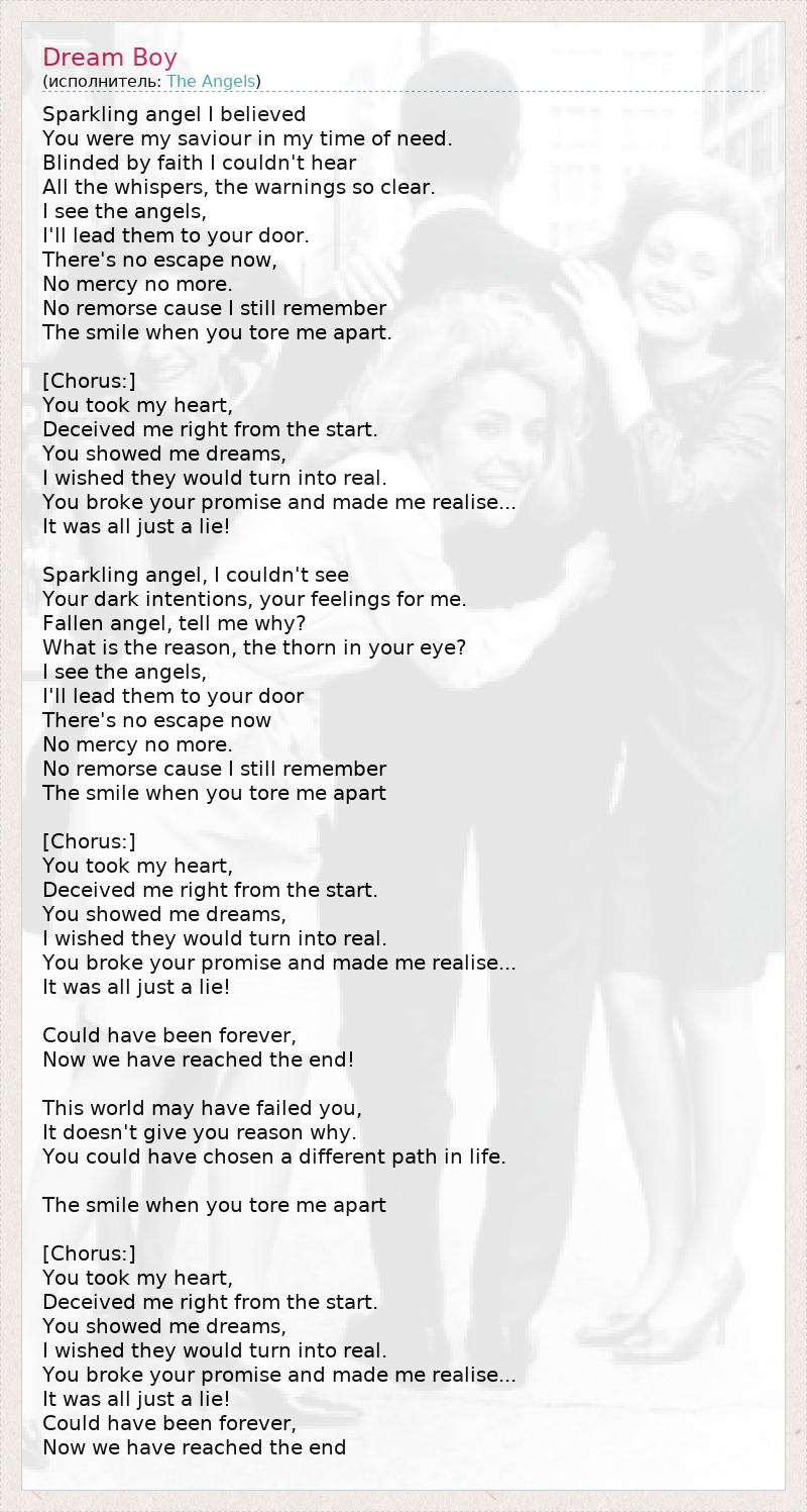 А как ты думаешь, о чем песня "Dream Boy" ?