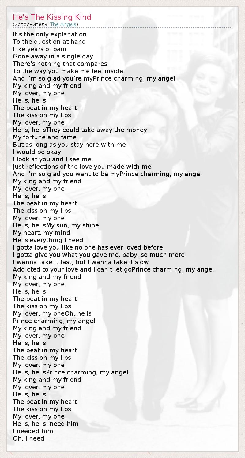 А как ты думаешь, о чем песня "He's The Kissing Kind" ?