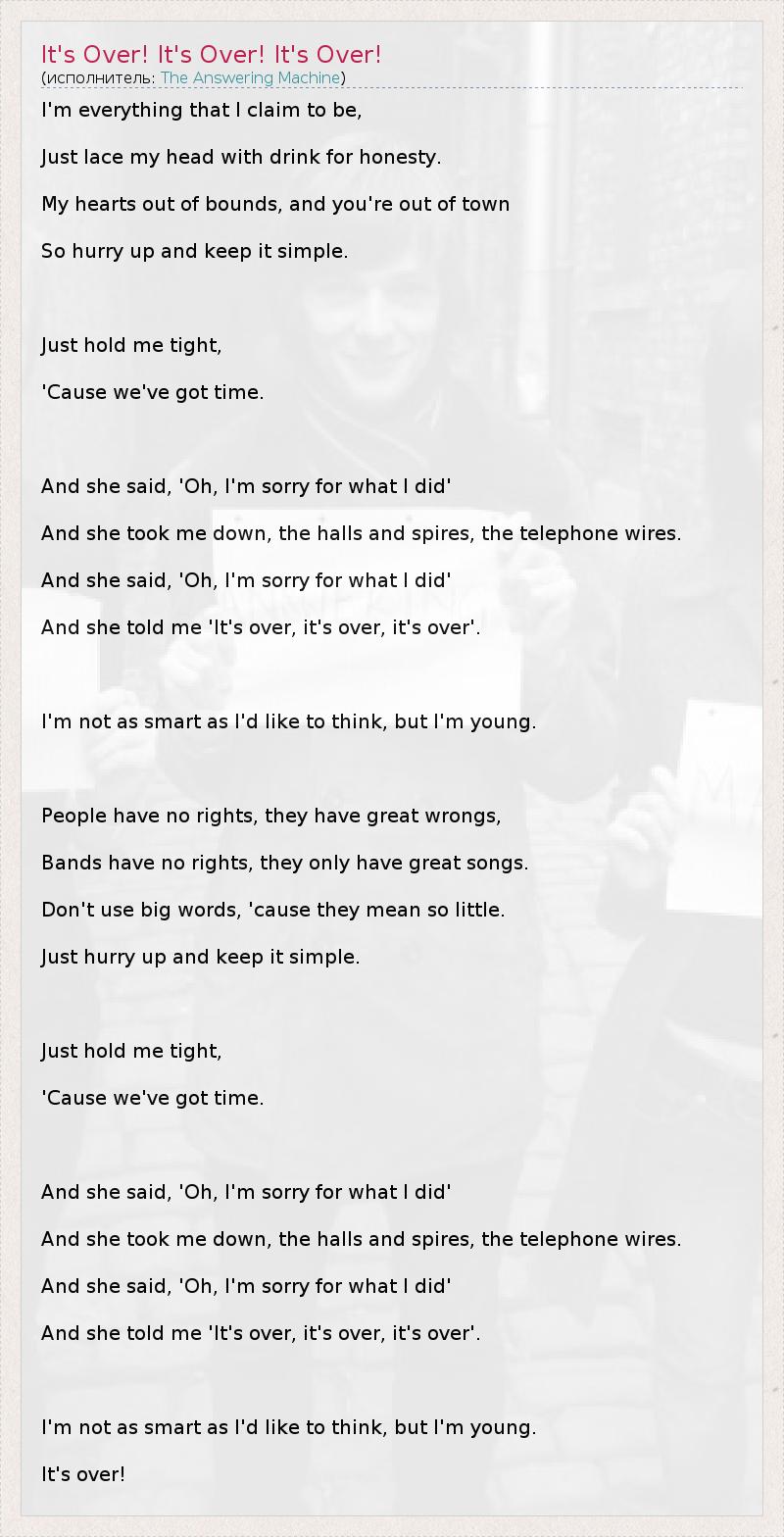 А как ты думаешь, о чем песня "It's Over! It's Over! It's Over!" ?