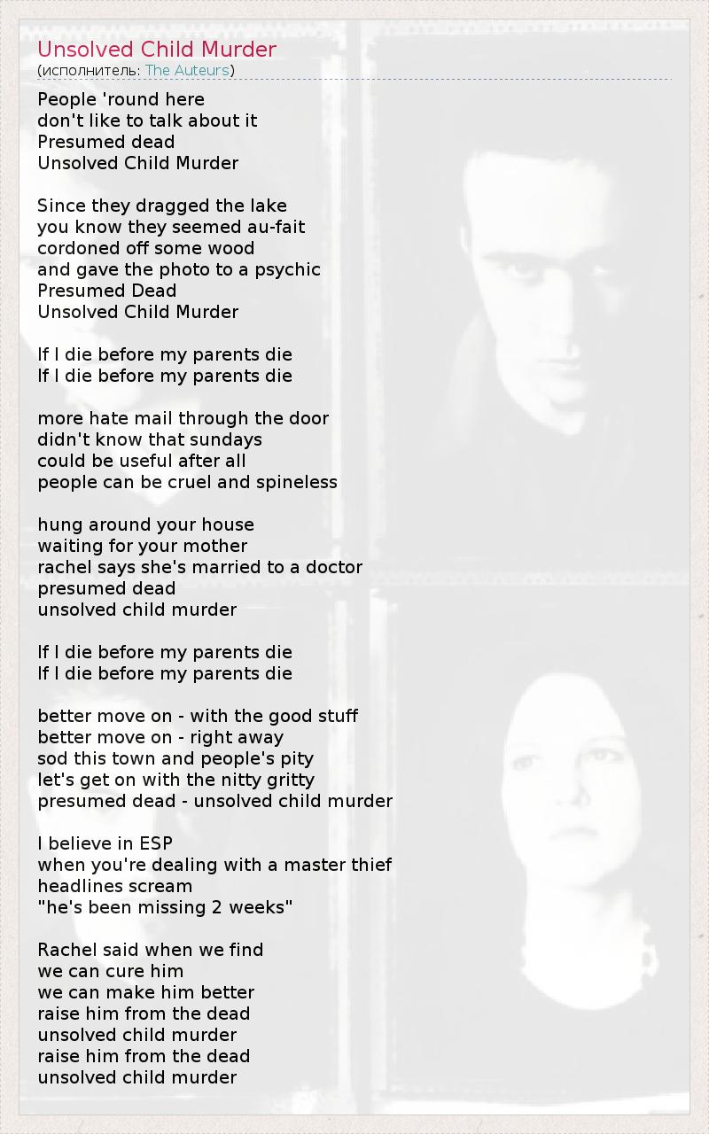 А как ты думаешь, о чем песня "Unsolved Child Murder" ?