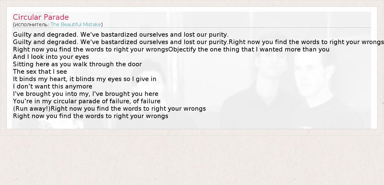 А как ты думаешь, о чем песня "Circular Parade" ?