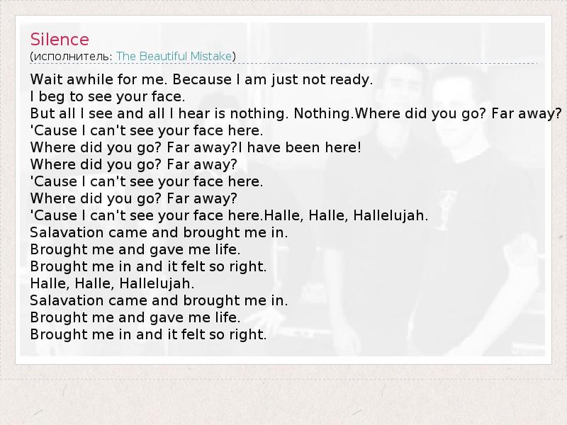 Это интересно:The Beautiful Mistake, группа из Сан Диего, Калифорния, основана в 2000м году, выпущенно 2 альбома дебютный - "Light A Match, For I Deserve To Burn" в 2002м, 2ой - "This Is Who You Are" в 2004м.дискографияDecember EP The Beautiful Mistake (EP) Light a Match, For I Deserve to Burn This Is Who You Are The Beautiful Mistake & Ettison Clio (Split EP) оффициальный сайт - thebeautifulmistake.commyspace - myspace.com/thebeautifulmistake