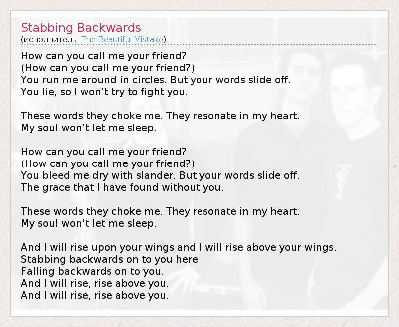 А как ты думаешь, о чем песня "Stabbing Backwards" ?