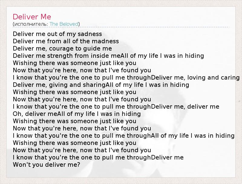 Won't you deliver me?