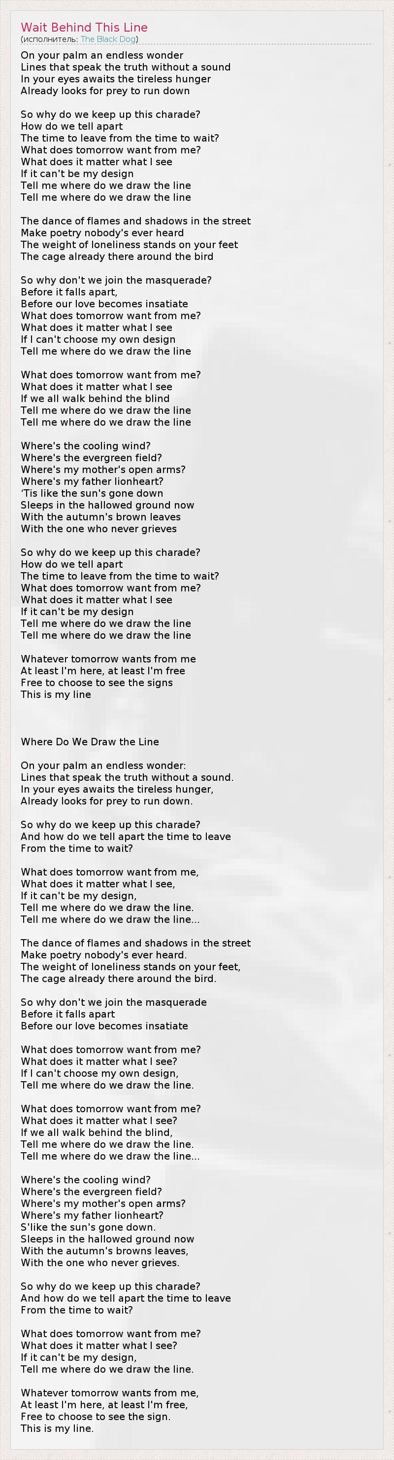 А как ты думаешь, о чем песня "Wait Behind This Line" ?