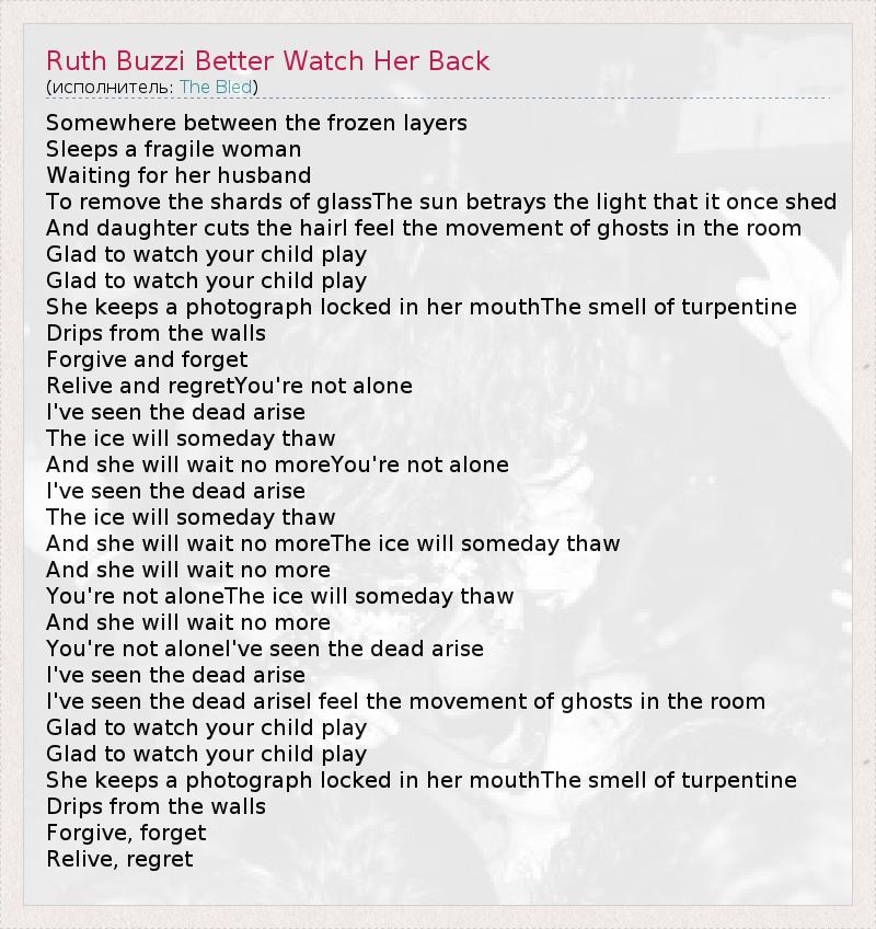 А как ты думаешь, о чем песня "Ruth Buzzi Better Watch Her Back" ?