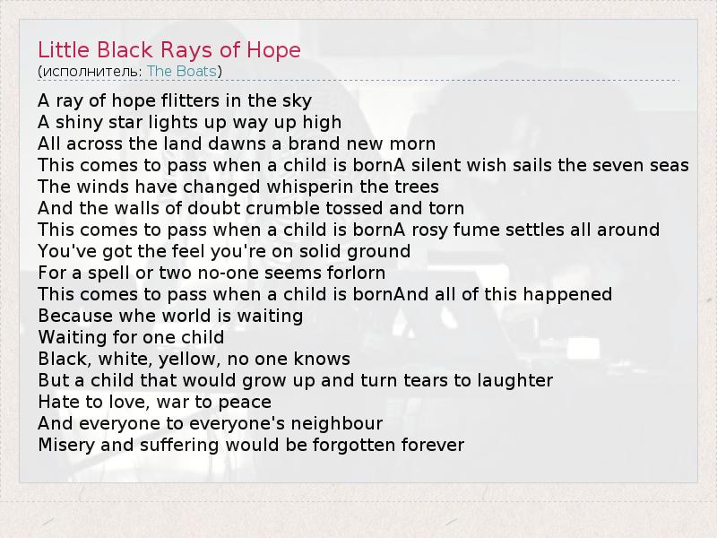 А как ты думаешь, о чем песня "Little Black Rays of Hope" ?