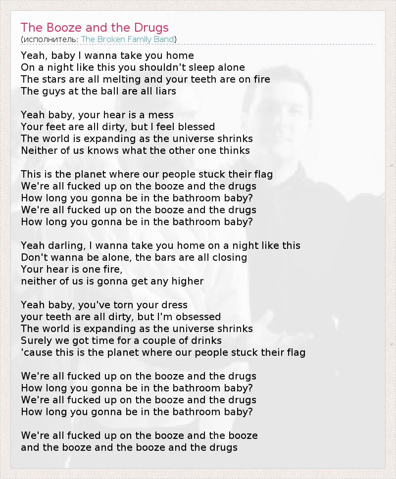 А как ты думаешь, о чем песня "The Booze and the Drugs" ?