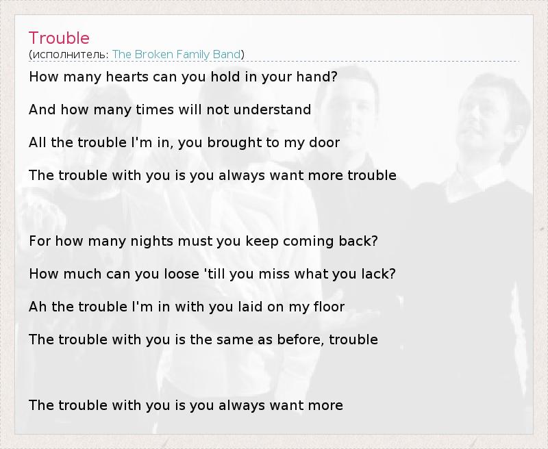 Это интересно:Группа, играющая британский рок, из Камбриджа-Лондон.Состав:Steven AdamsJay WilliamsGavin JohnsonMick RomanДискография:1)"Hello Love" - Jul 20072)"Balls" (Track & Field) - Feb 20063)"Welcome Home, Loser" (Track & Field) - Feb 20054)"Cold Water Songs" (Snowstorm Records) - Jun 2003Официальный сайт The Broken Family:http://www.thebrokenfamilyband.com/