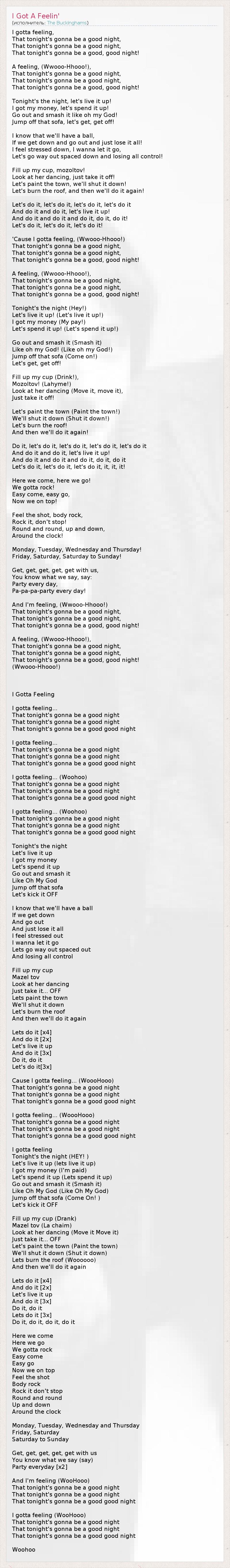 'Cause I gotta feeling, (Wwooo-Hhooo!)