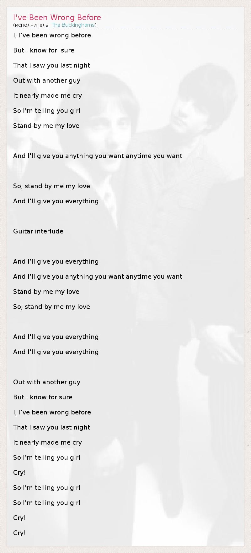 А как ты думаешь, о чем песня "I've Been Wrong Before" ?