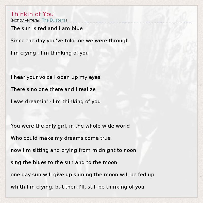 А как ты думаешь, о чем песня "Thinkin of You" ?