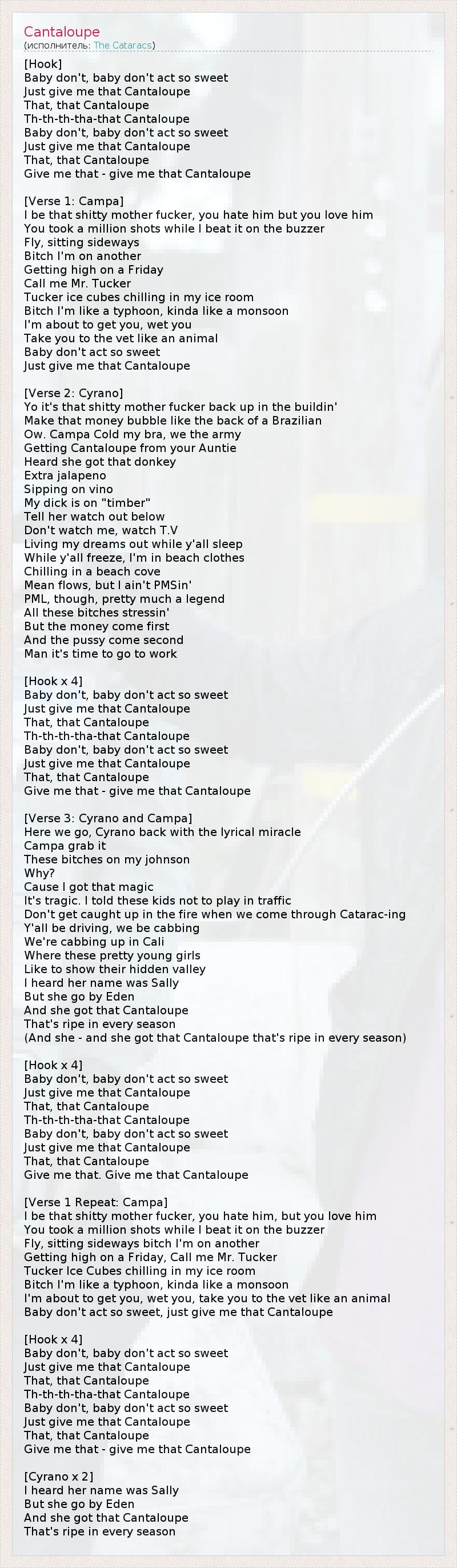 А как ты думаешь, о чем песня "Cantaloupe" ?