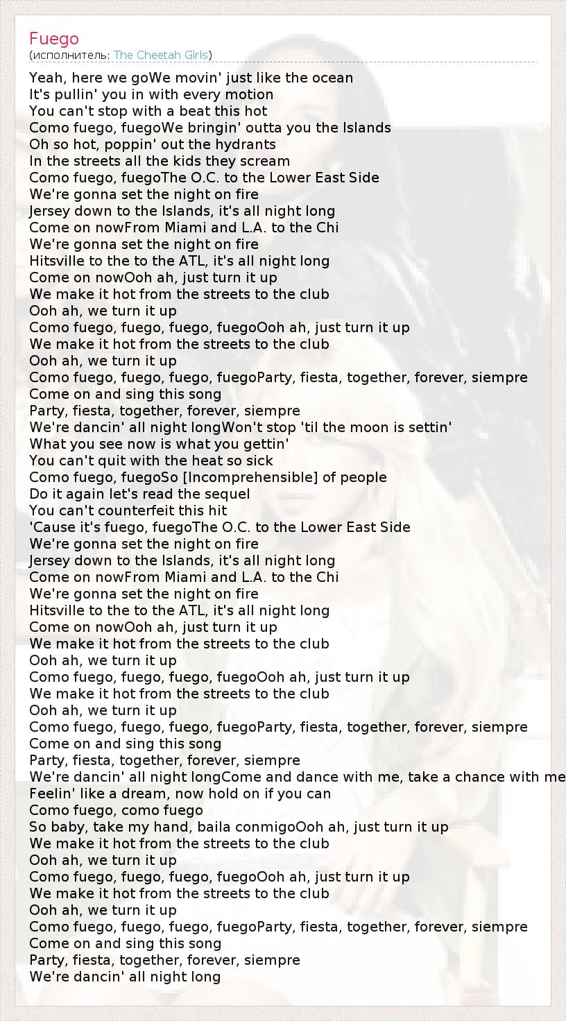 Como fuego, fuego, fuego, fuegoOoh ah, just turn it up