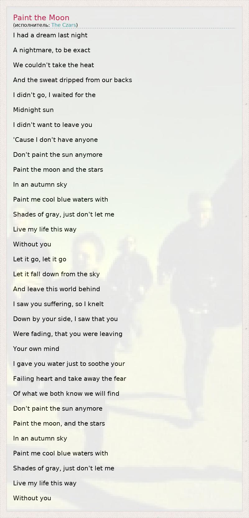 А как ты думаешь, о чем песня "Paint the Moon" ?
