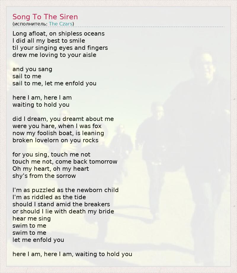 А как ты думаешь, о чем песня "Song To The Siren" ?