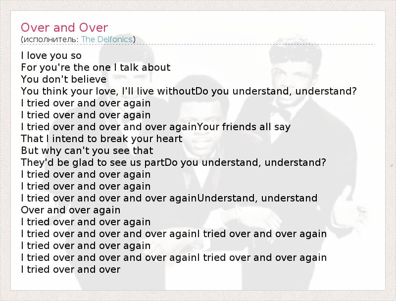 I tried over and over and over againUnderstand, understand