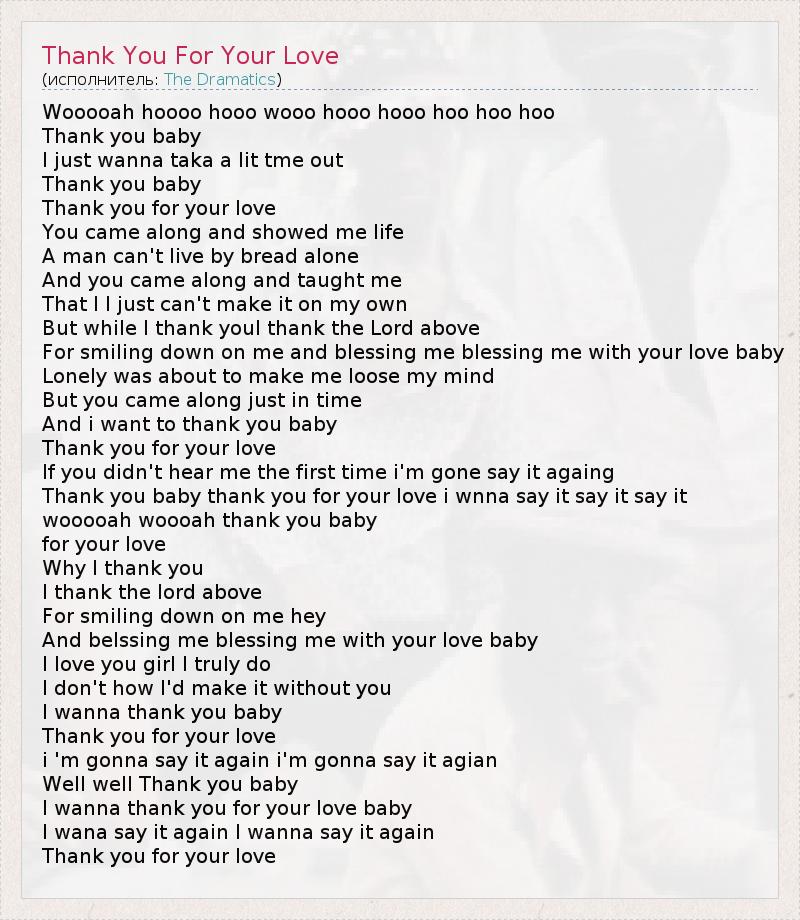 А как ты думаешь, о чем песня "Thank You For Your Love" ?