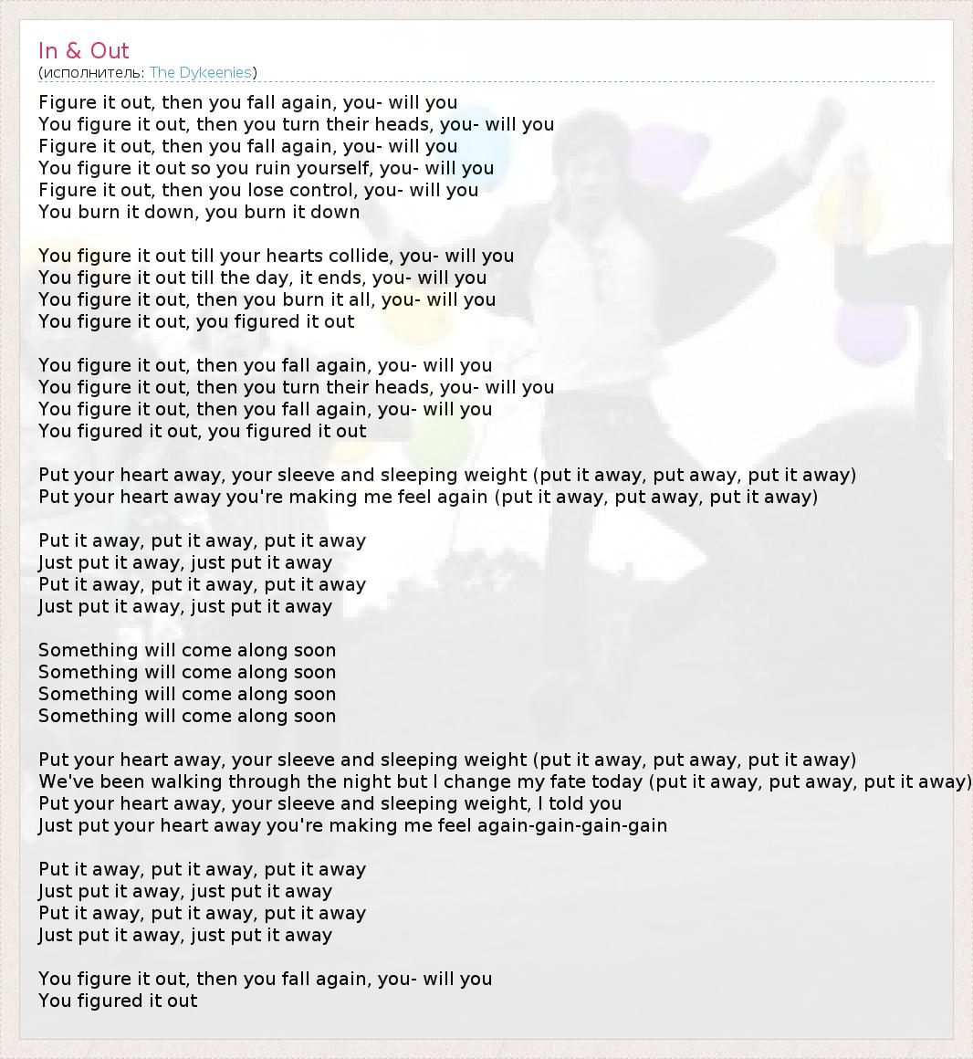 А как ты думаешь, о чем песня "In & Out" ?