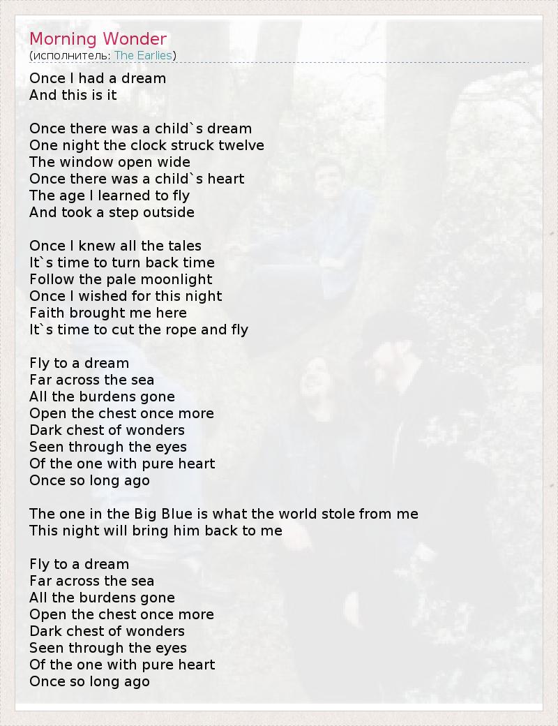 А как ты думаешь, о чем песня "Morning Wonder" ?