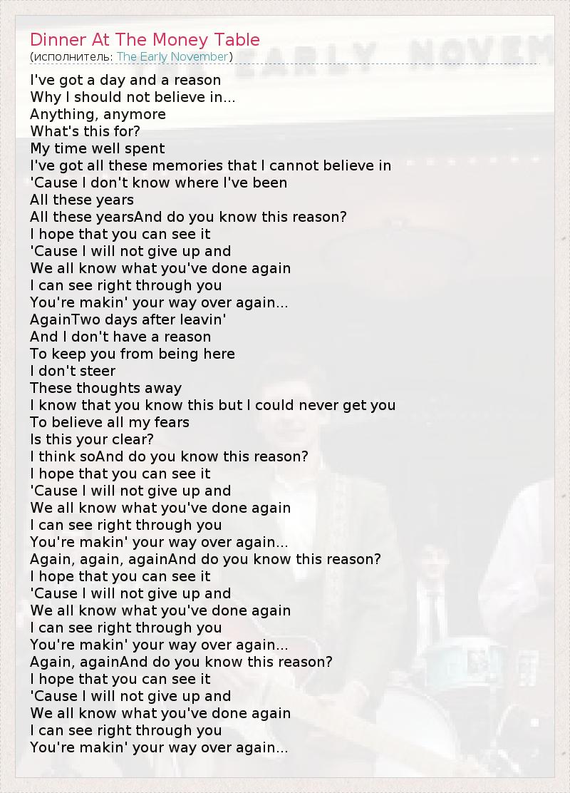 А как ты думаешь, о чем песня "Dinner At The Money Table" ?