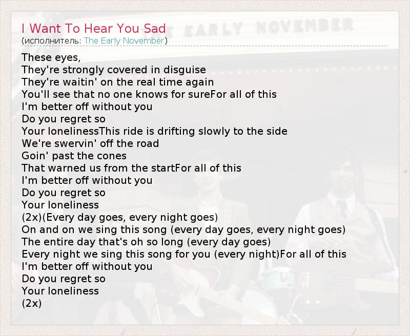 А как ты думаешь, о чем песня "I Want To Hear You Sad" ?