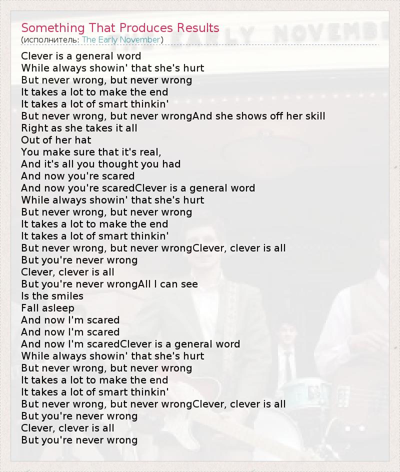 А как ты думаешь, о чем песня "Something That Produces Results" ?
