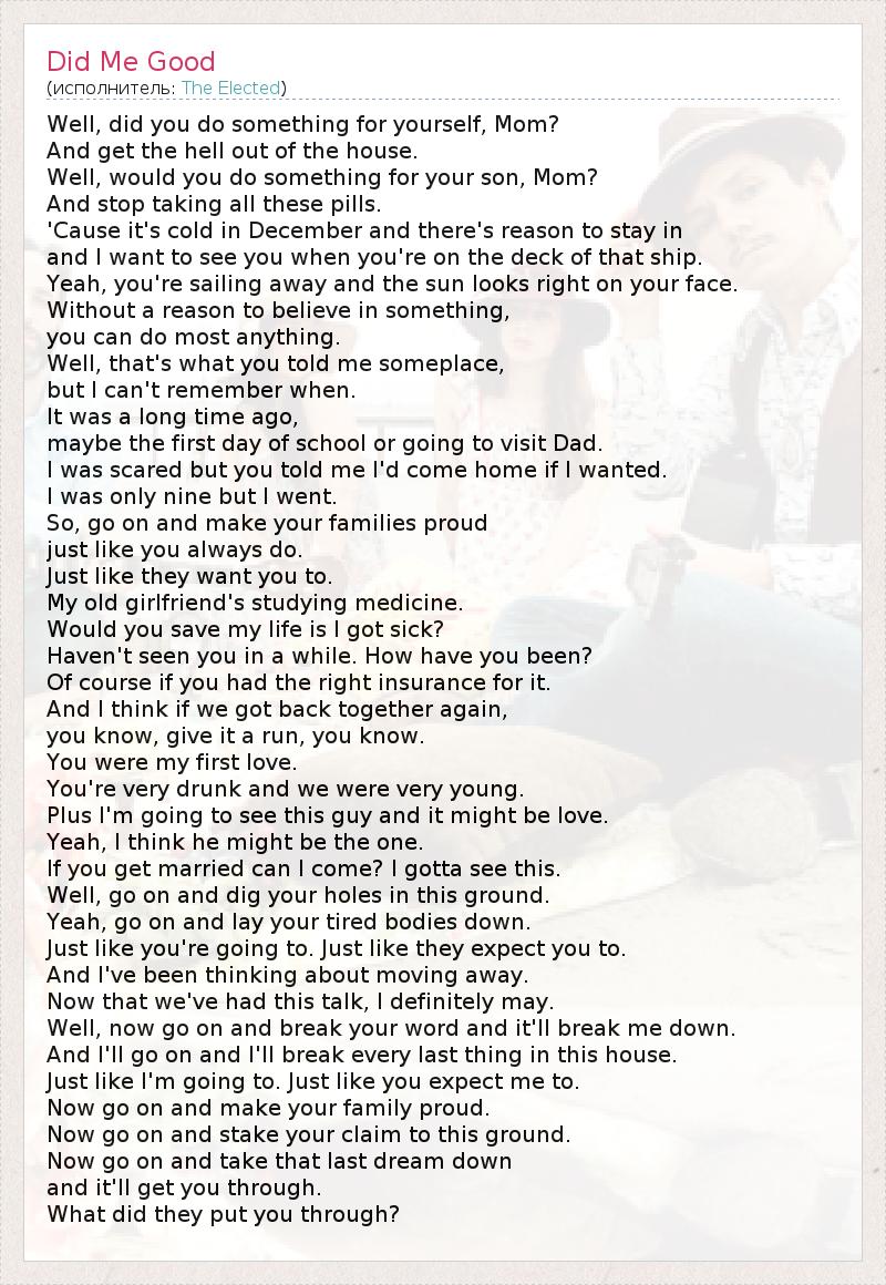 А как ты думаешь, о чем песня "Did Me Good" ?