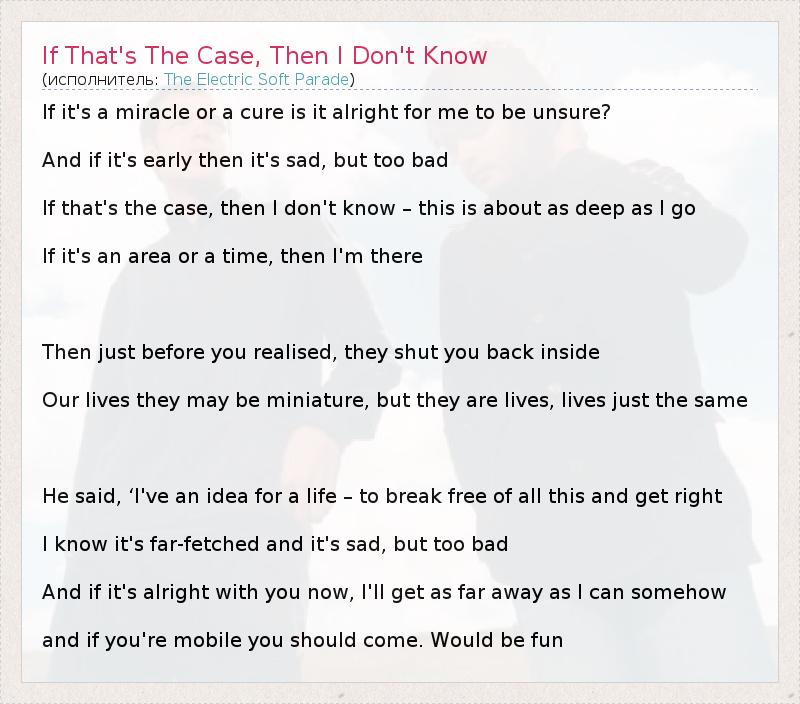 А как ты думаешь, о чем песня "If That's The Case, Then I Don't Know" ?