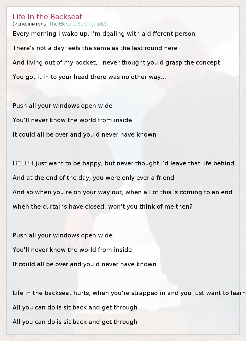 А как ты думаешь, о чем песня "Life in the Backseat" ?