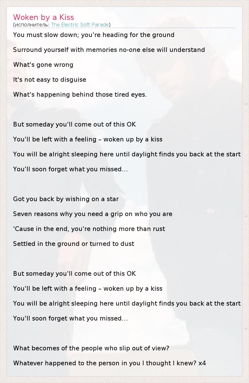 А как ты думаешь, о чем песня "Woken by a Kiss" ?