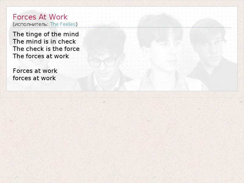 А как ты думаешь, о чем песня "Forces At Work" ?